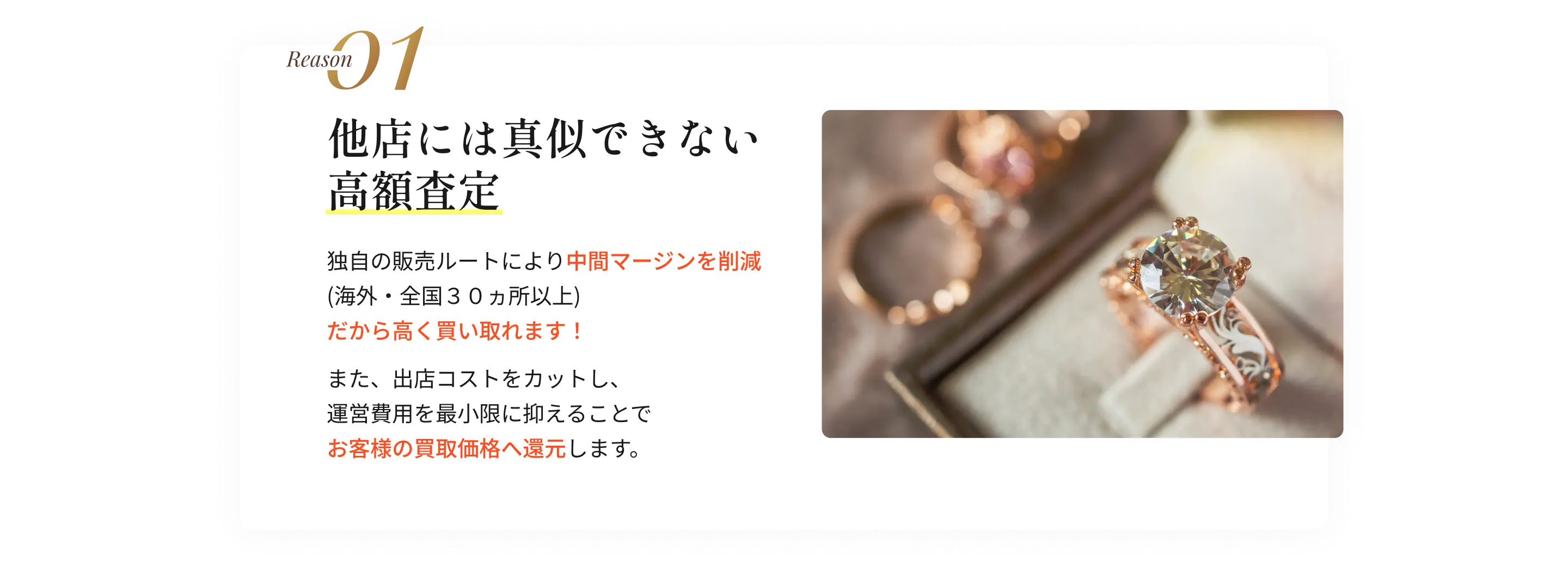 Q.どんなものが査定対象ですか?A.ブランド品、ジュエリー、貴金属、時計、遺品整理品など幅広く対応しております。詳しくはお問い合わせください。