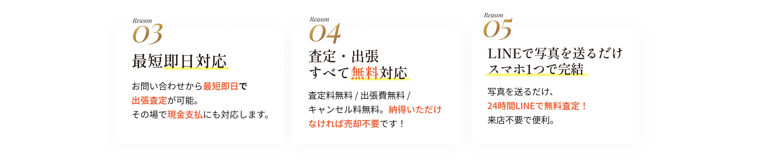 Q.査定にお金はかかりますか?A.査定料・出張料は一切いただいておりません。お気軽にご予約ください。