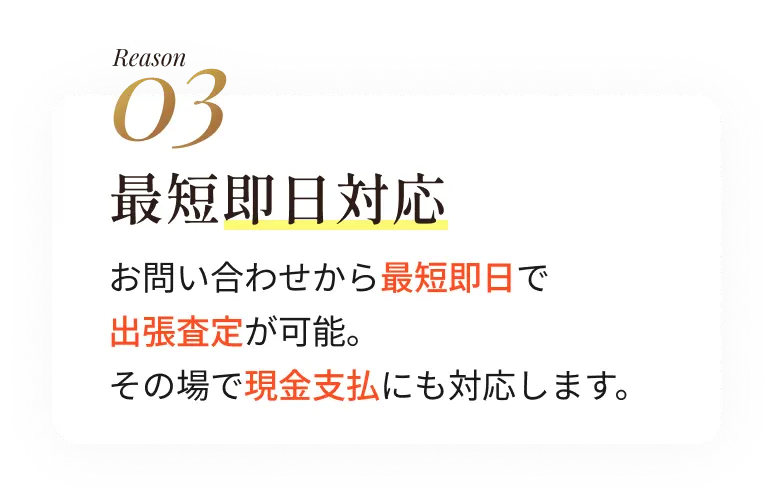 Q.買取後は現金支払いですか?A.はい、その場で現金でお支払いいたします。